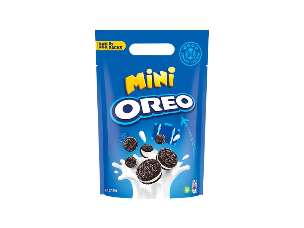 Vezměte si sladkou radost kamkoliv s Oreo Mini Pouch 240 g! Malé sušenky s klasickou kakaovo-vanilkovou chutí jsou ideální na cesty, svačinu nebo do krabičky pro děti. Praktické větší balení znamená, že sladké potěšení vydrží déle a vždy po ruce pro celou rodinu.