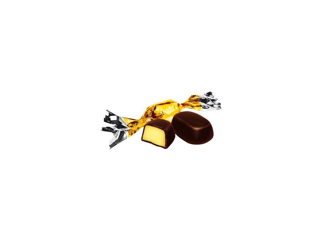 Fondánová cukrovinka 75 % s chutí banánů v hořké čokoládě 25 %.