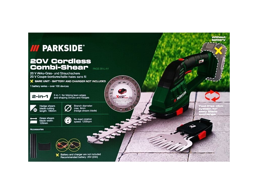 Parkside Aku nůžky na trávník a živý plot PAGS 20-Li A1