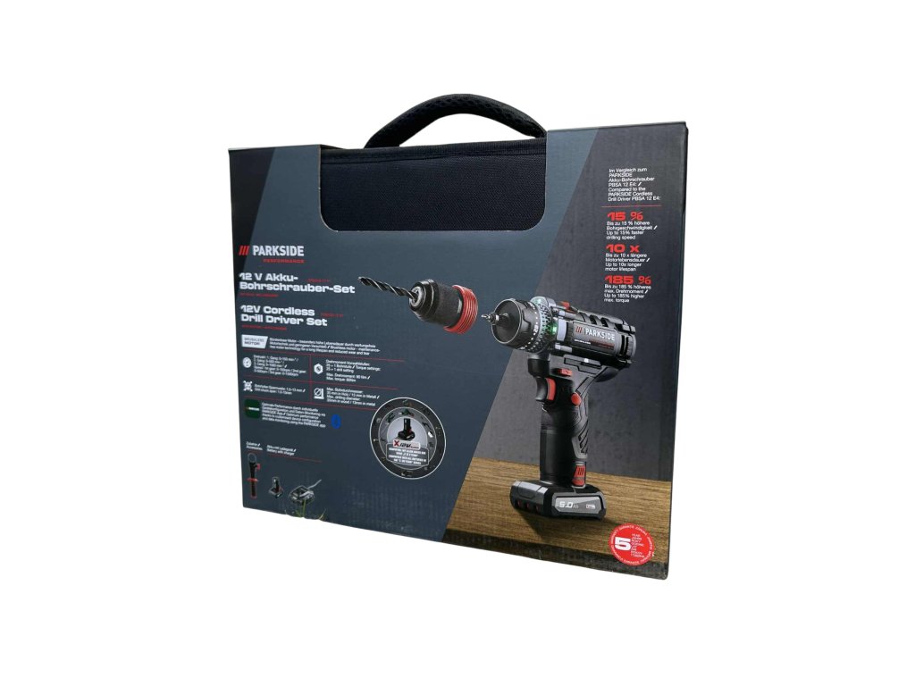- Obsah balení: 1x aku vrtací šroubovák, 1x akumulátor (12 V / 5 Ah), 1x nabíječka (6 A), 1x přídavné držadlo, 1x úložná taška