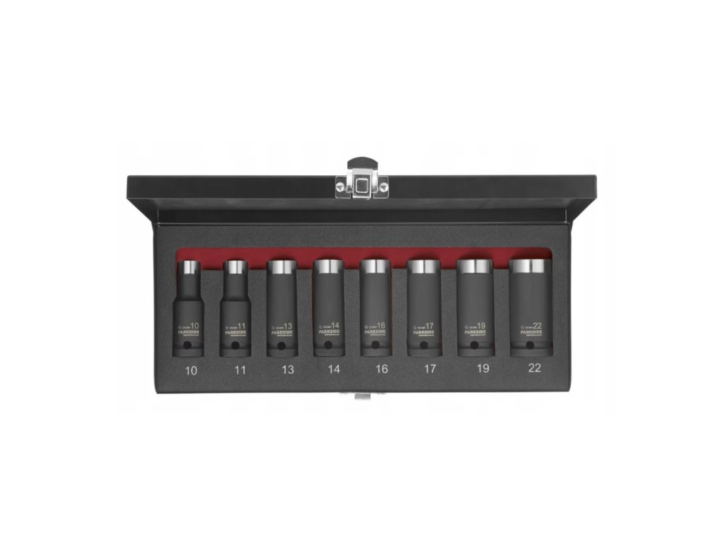 Parkside Performance 8dílná sada dlouhých nástrčných klíčů pro rázové utahováky, 10–22 mm, 1/2"