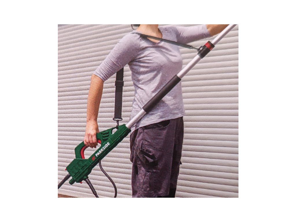 Díky nastavitelnému teleskopickému ramenu a integrované vysokotlaké hadici je manipulace jednoduchá a bezpečná. Součástí balení je také úhlová i plochá tryska pro efektivnější a cílené čištění různých povrchů.