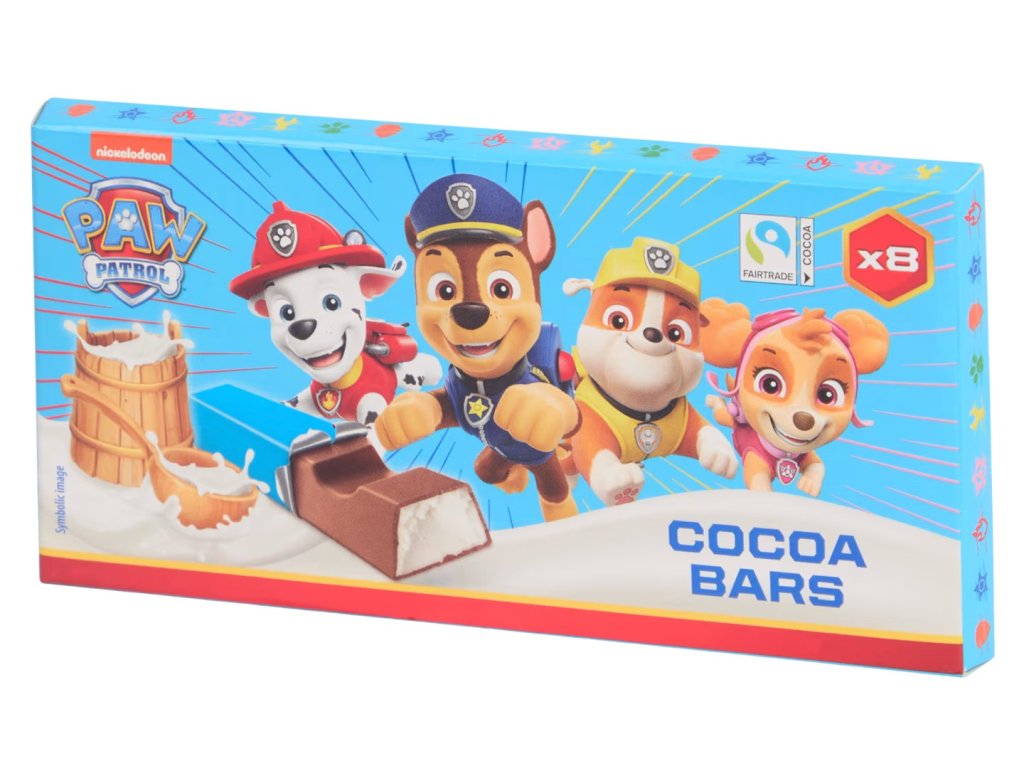 Tyčinky z mléčné čokolády s mléčnou náplní (50%) s motivem Tlapkové patroly.