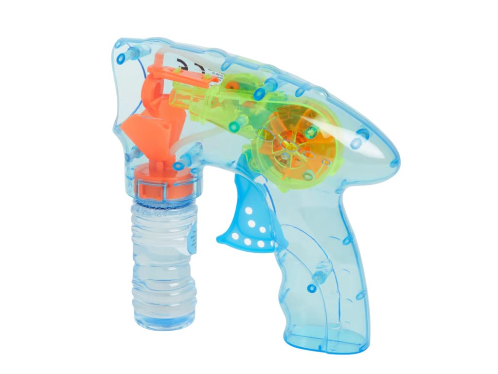 Úžasná bublifuková pistolka, se kterou bude dělání bublin hračka. Pistole má navíc červenou kontrolku, která se rozsvítí při každém stisknutí spouště.