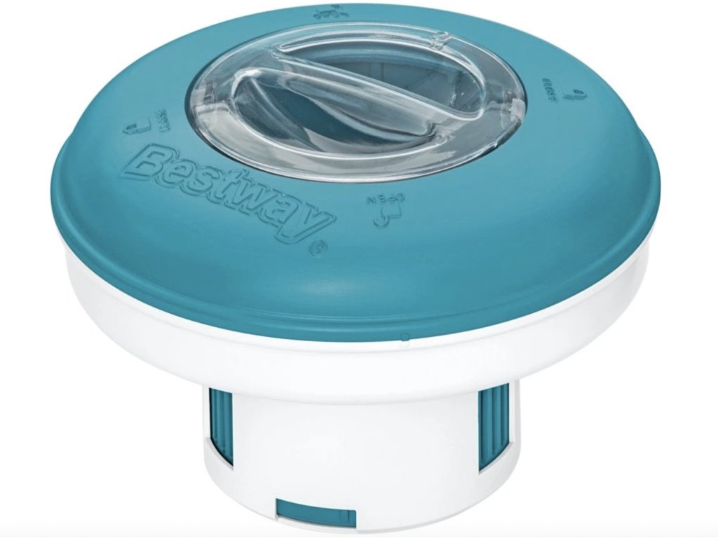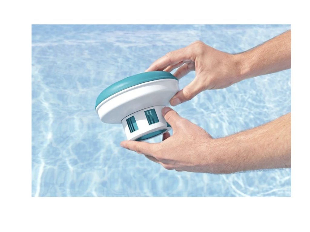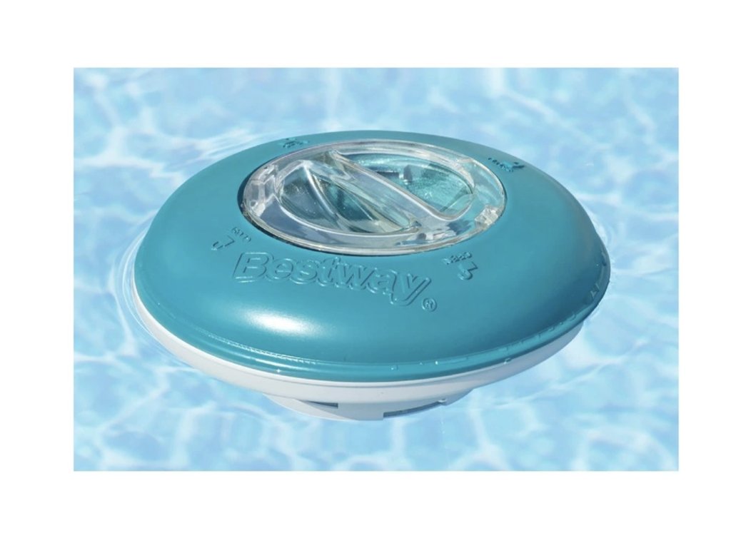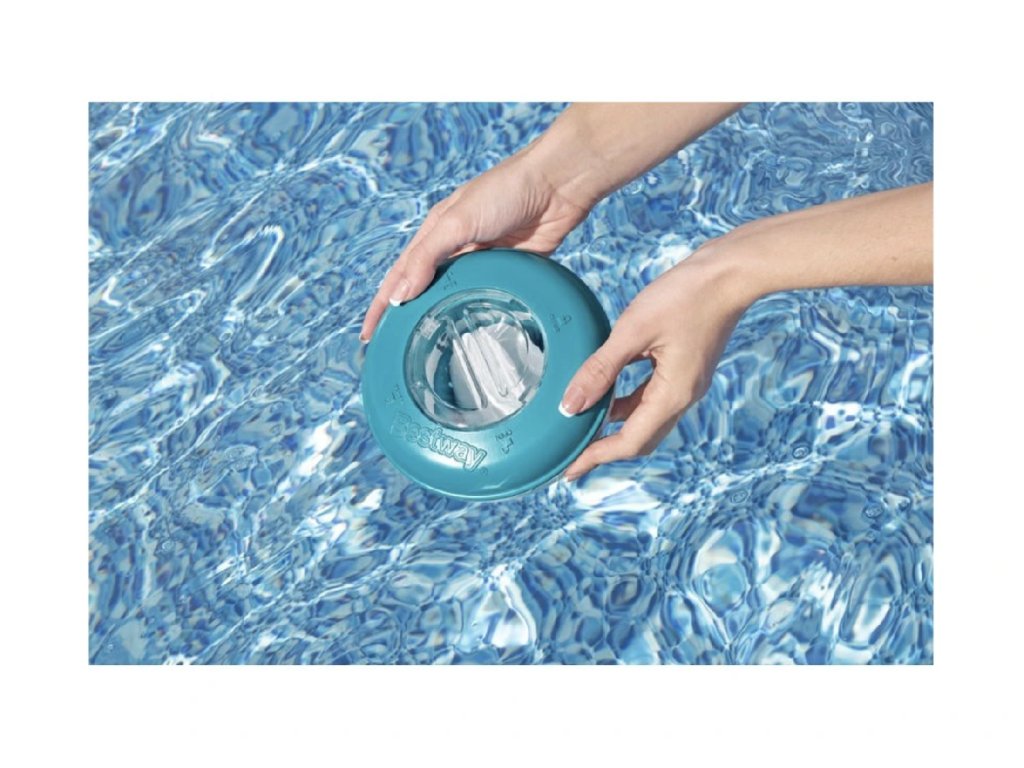 Plovák do bazénu na chlorové tablety, který umožňuje plynulé a postupné uvolňování a zajišťuje tak stálou dezinfekci bazénové vody.