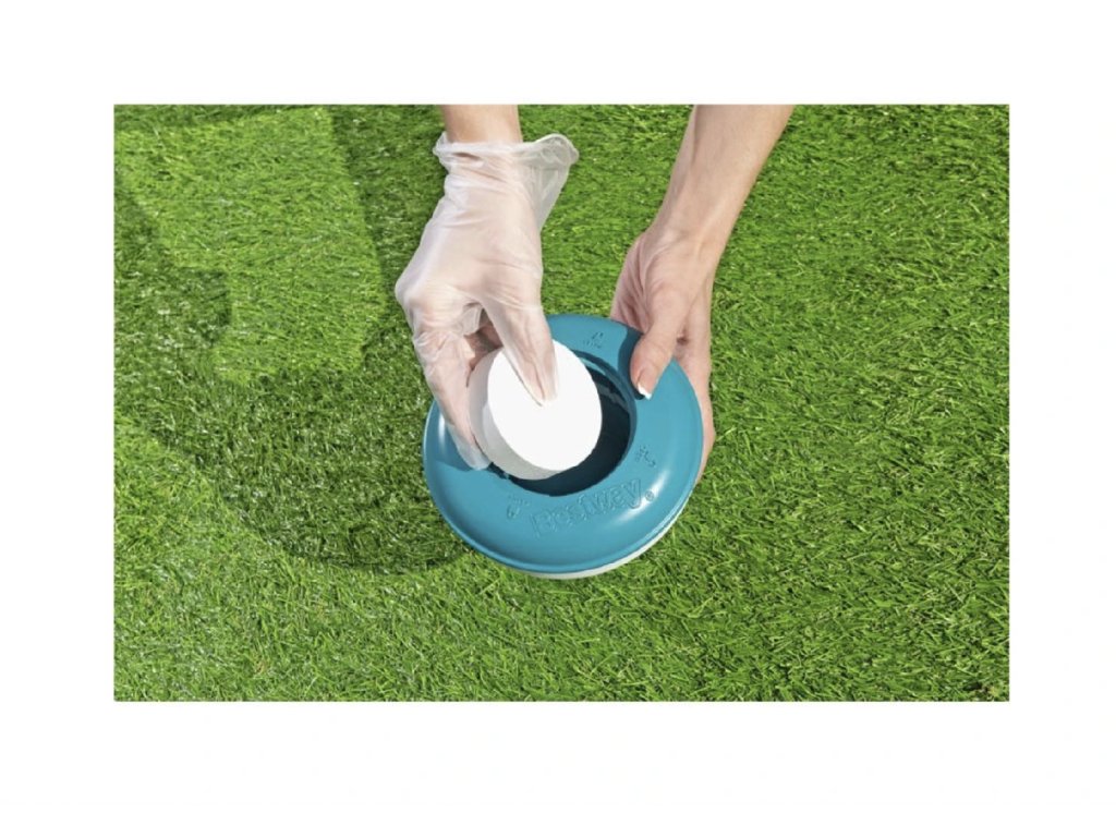 • Dávkuje až 3 velké tablety do průměru 7,6 cm. Chlórové nebo bromové tablety (nejsou součástí dodávky).