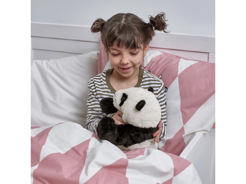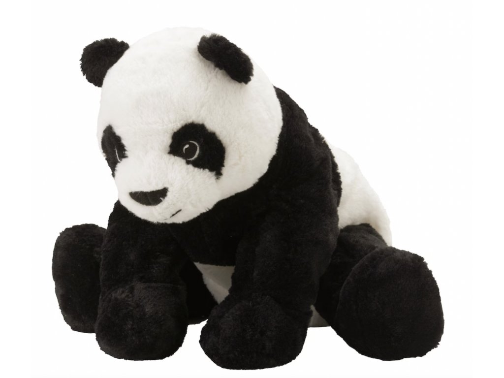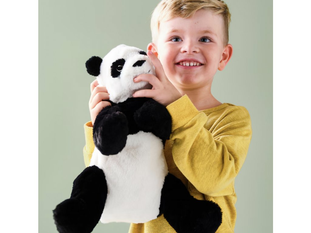 Ve volné přírodě sní dospělá panda každý den asi 38 kilogramů bambusu! Ale tento černobílý plyšák nepotřebuje žádné jídlo, jen hodně lásky.