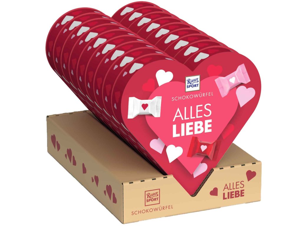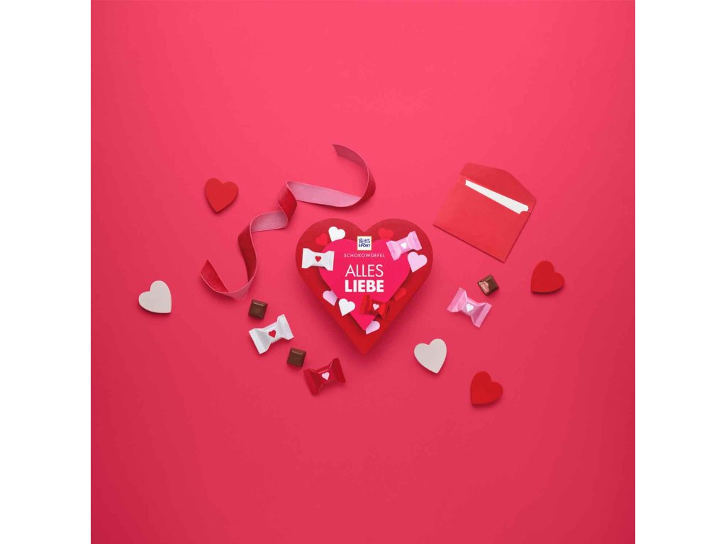 Sladké vyznání lásky! Čokoládové kostky Ritter Sport ve tvaru srdce se dodávají v krásně navržené dárkové krabičce obsahující 15 lahodných čokoládových kostek v následujících variantách: čokoládová pěna, jahodový jogurt a jogurt. Ideální pro potěšení vašich blízkých na Den matek nebo při jakékoli jiné příležitosti. Vychutnejte si tyto jemné čokoládové výtvory a nechte se svést jejich rozmanitostí.