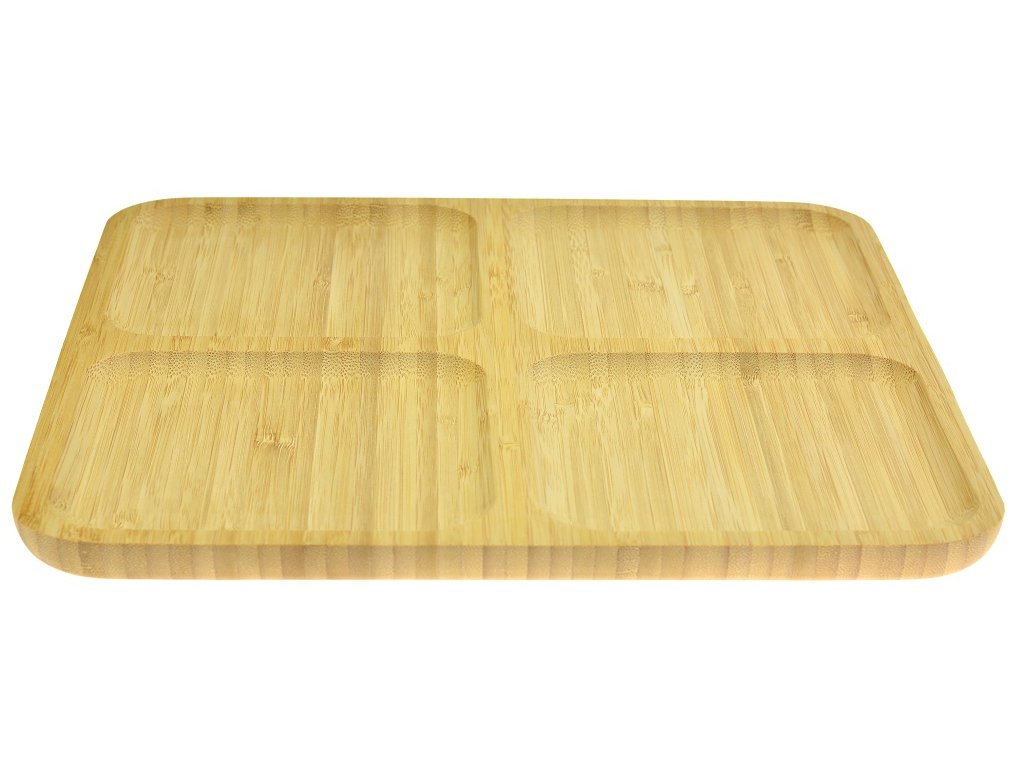 Bambusový servírovací podnos se čtyřmi jamkami.