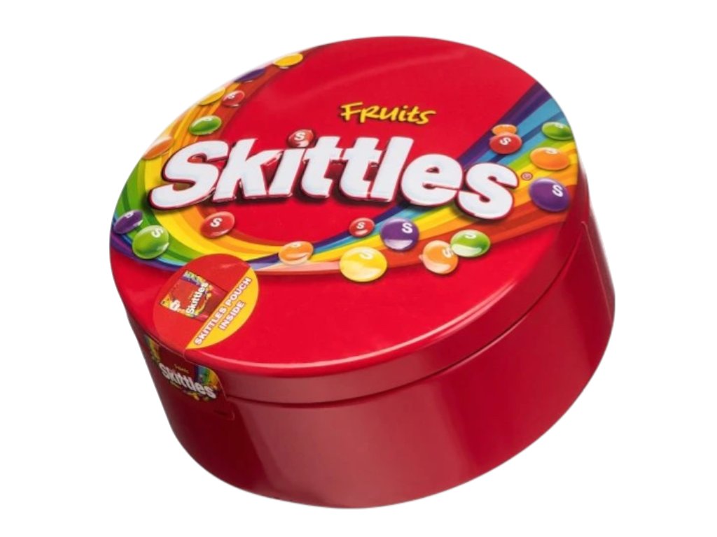 Skittles Fruit 195 g Tin je ideální doplněk do vašeho sortimentu sladkostí – přináší radost, barvy a ovocnou chuť, kterou každý miluje. Ochutnejte duhu dnes! 🌈