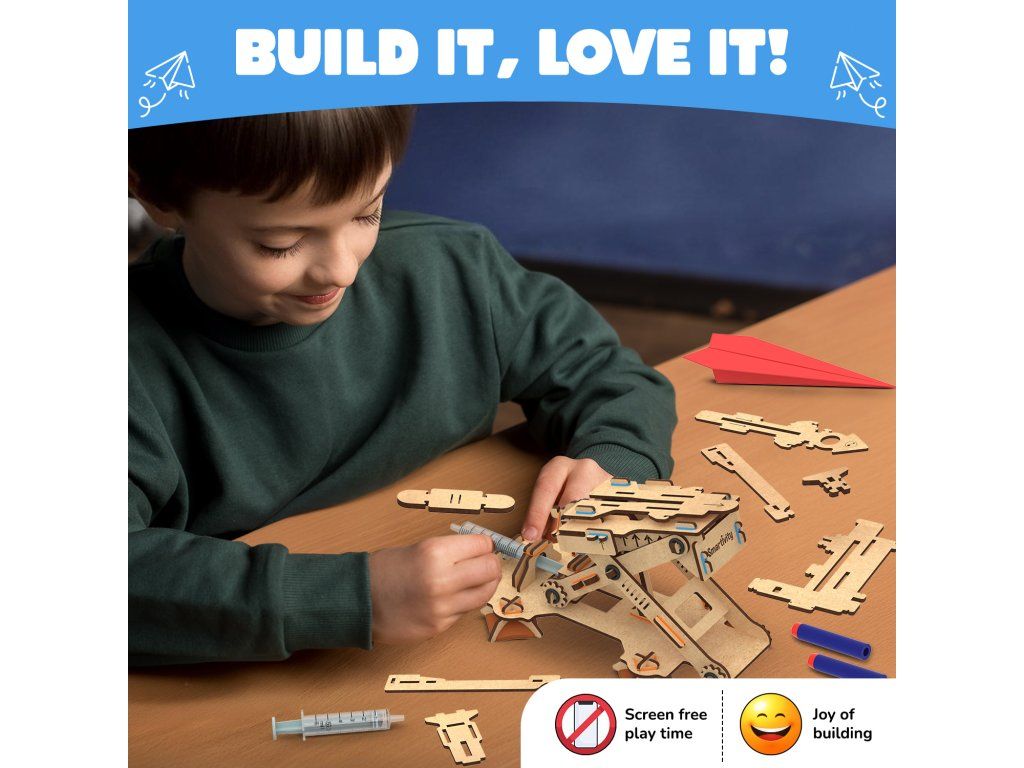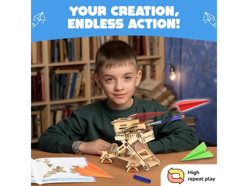 Jedná se o DIY (sestav si sám) sadu, která umožní dítěti sestavit hydraulický katapult určený pro vystřelování papírových letadel (nebo měkkých „raket“/projektilů).