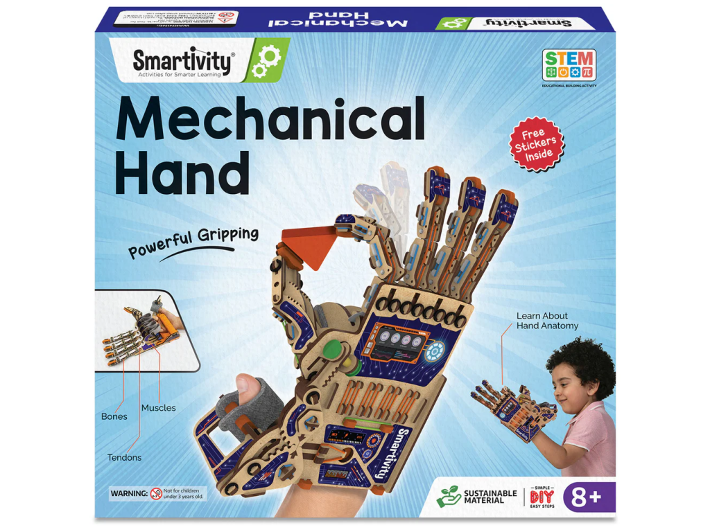 Interaktivní stavebnice, díky které si děti postaví vlastní funkční robotickou ruku a přitom pochopí, jak pracují klouby, táhla a převody v lidském těle i mechanice. Ideální pro malé konstruktéry, kteří milují experimentování.