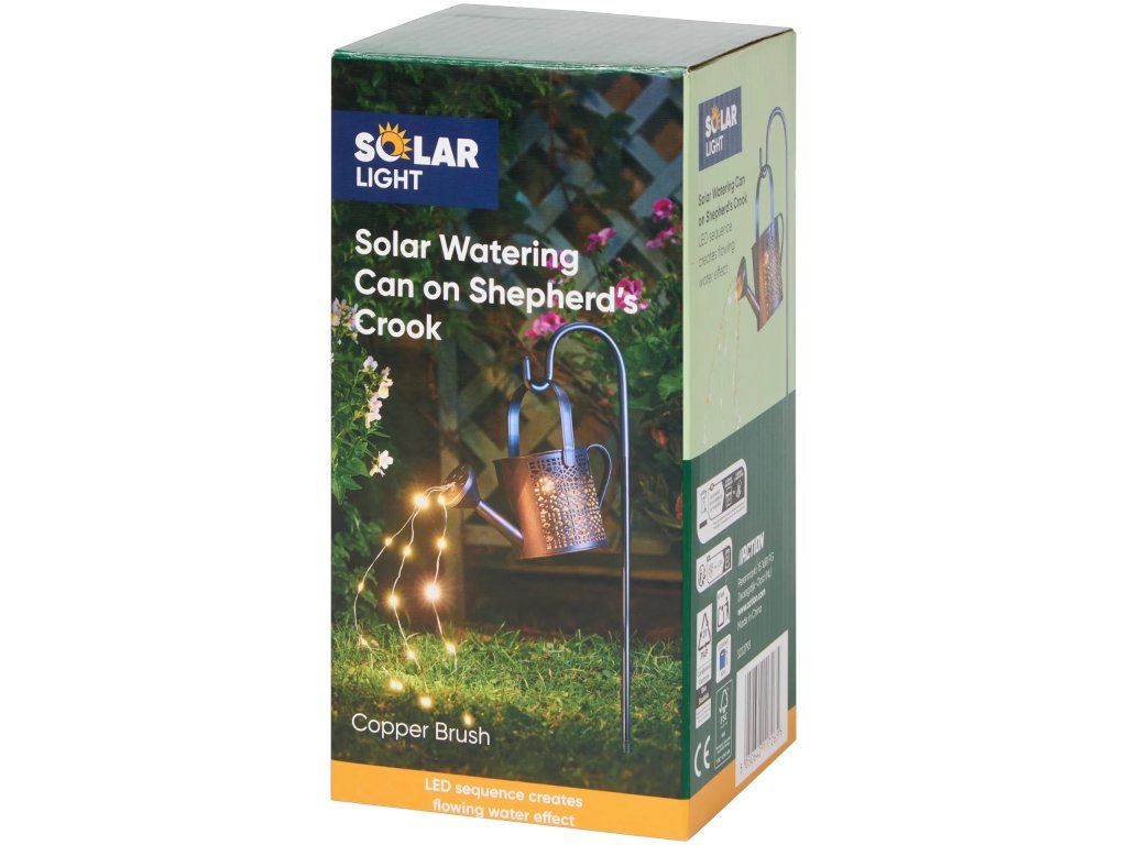 Zavěšená konev na tyči vypadá, jako by z ní skutečně tekla zářící voda. Díky teplému LED světlu vytváří příjemnou, pohádkovou atmosféru ideální pro večery na zahradě.