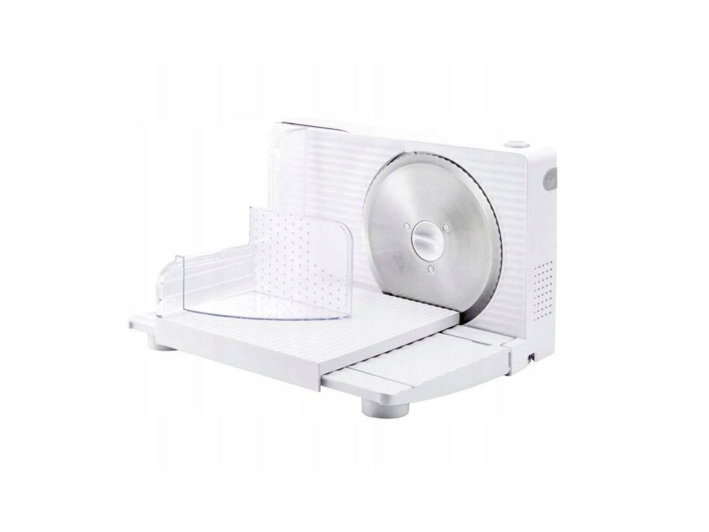 Kráječ je vybaven ostrým vroubkovaným nožem z nerezové oceli (vyrobeno v Německu – RSG Solingen), který zajišťuje čisté a rovnoměrné řezy. Tloušťku plátků lze plynule nastavit až do 17 mm, takže si snadno zvolíte ideální výsledek pro každý druh potraviny.