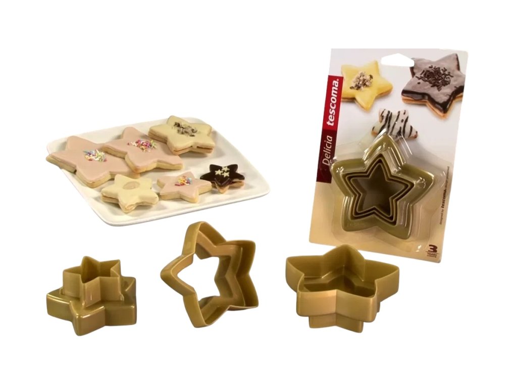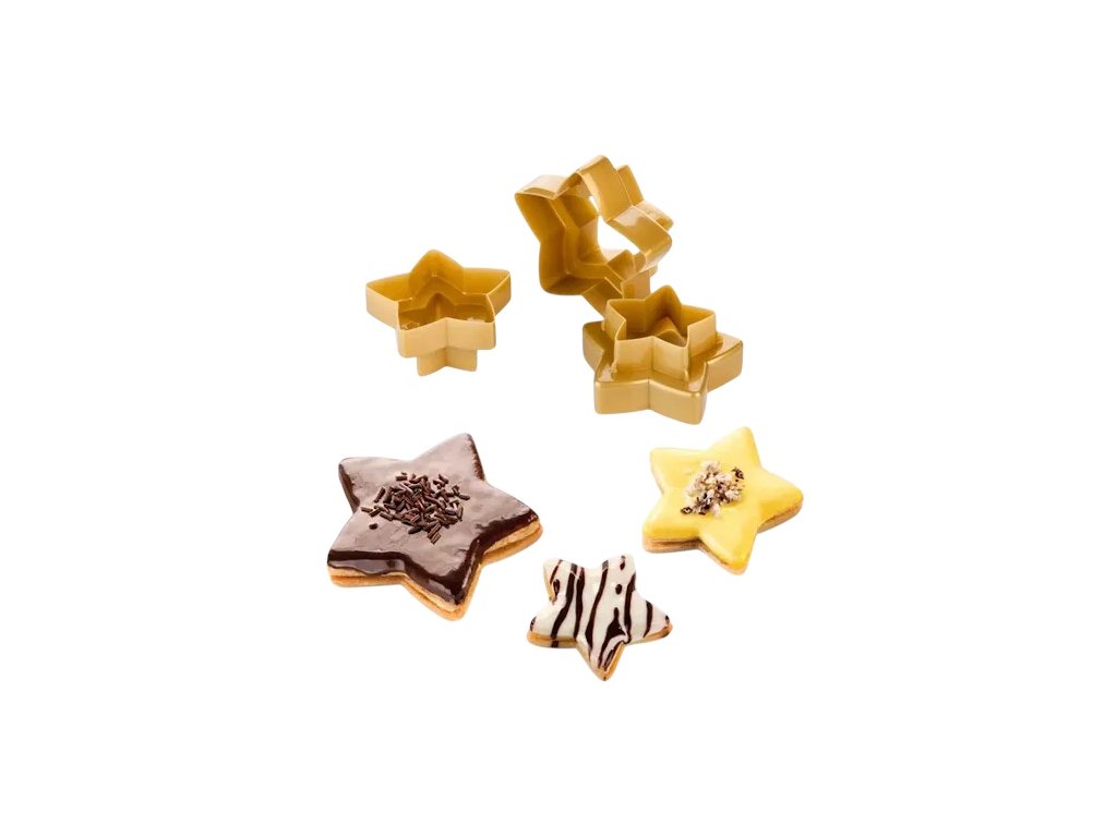 TESCOMA Delicia Hvězda 3 ks zlaté - oboustranné plastové vykrajovátka na cukroví a perníčky