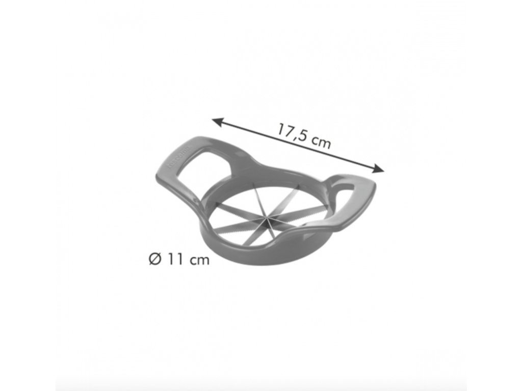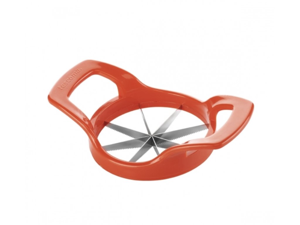 Kráječ na rajčata PRESTO od firmy Tescoma S kráječem snadno a rychle rozkrojíte rajská jablíčka na 8 stejných dílků. Šikovný kráječ s mimořádně ostrými zubatými čepelemi rajče nejen rozkrojí, ale dokrojí a oddělí od sebe i nepoddajnou slupku. Výrobek je vyroben z prvotřídní nerezavějící oceli a odolného plastu. Výrobek je vhodný do myčky nádobí.