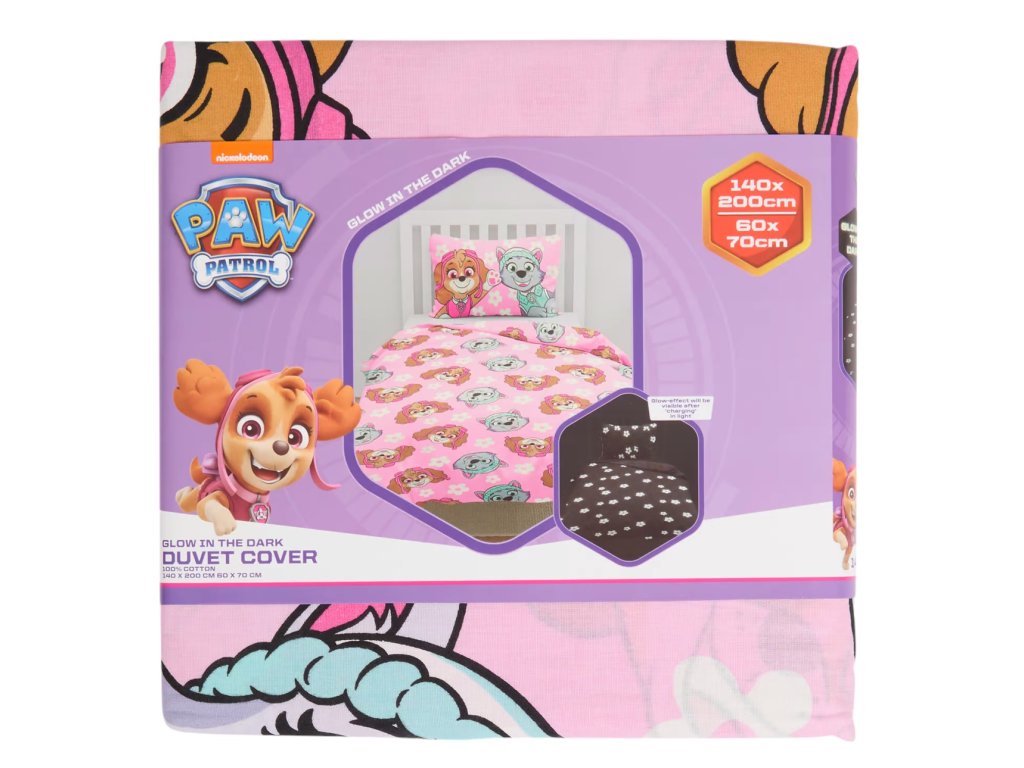 Tlapková Patrola Povlečení svítící ve tmě růžová 140 × 200 cm