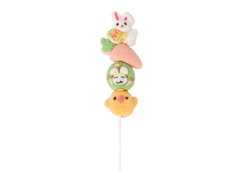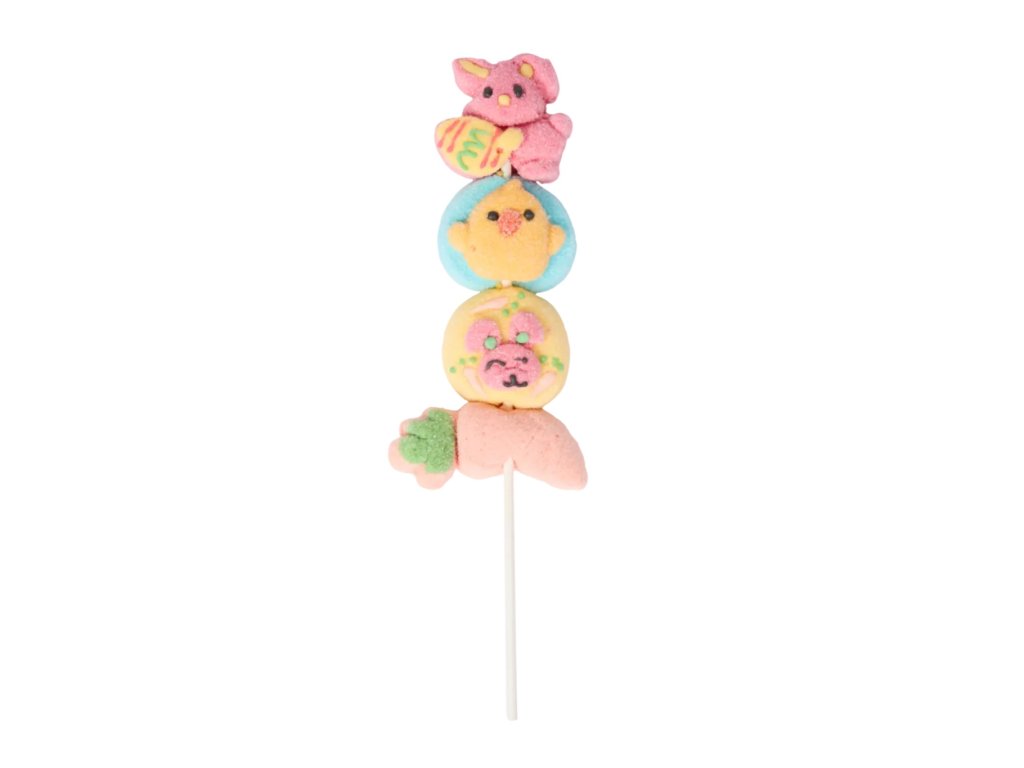 Toto Velikonoční mashmallow lízátko přináší zábavnou kombinaci měkkých, nadýchaných marshmallow bonbonů navlečených na špejli – ideální pro malé i velké mlsouny. Krásné sváteční lízátko je perfektní jako sladká odměna, součást velikonočního košíčku nebo zábavný dárek na oslavy jara.