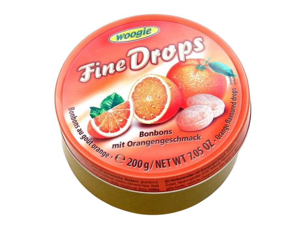 Proč si vybrat Woogie Fine Drops bonbóny v plechové dóze, pomeranč 200g?